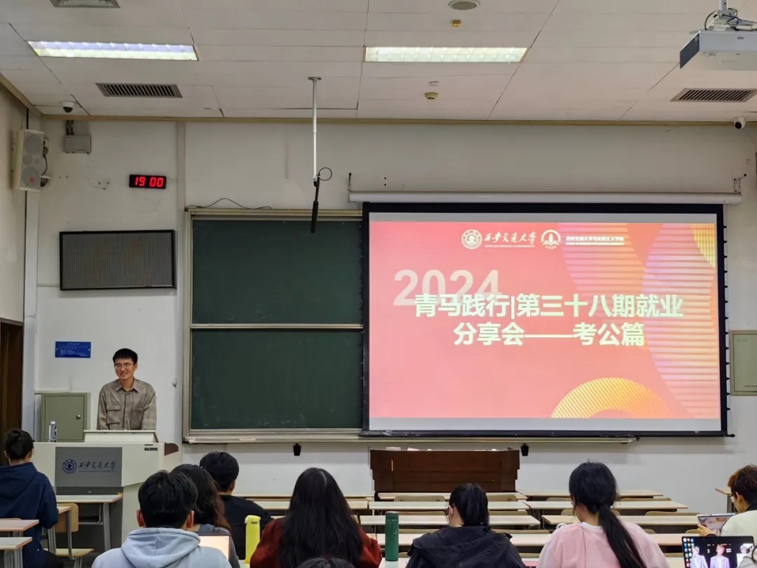 第三十八期青马践行就业分享会——考公篇成功举办。本次分享会邀请学院2021级硕士研究生王锟,分享他的“考公”经历,为有意向考公的同学答疑解惑,增强同学们的求职信心。