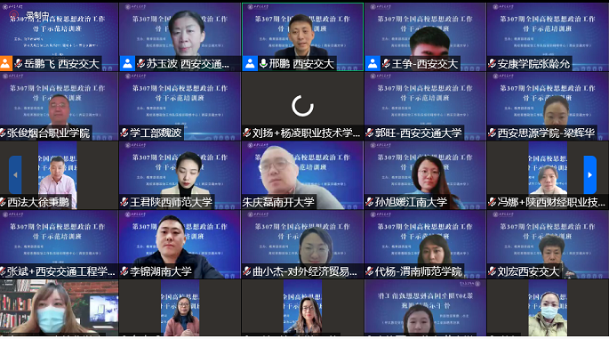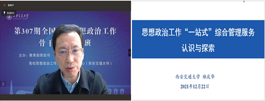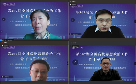 苏玉波教授、周远副教授、韩锐副教授,延安干部学院徐建国教授分别作“思想政治工作‘一站式’综合管理服务认识与探索”“中国共产党百年奋斗的重大成就和历史经验——学习贯彻党的十九届六中全会精神”“基于三全育人的‘一站式’学生社区综合服务改革的实践和探索”“西迁精神的历史意义与时代价值”“延安精神及其时代价值”等专题讲座。同时,培训还设置了分组研讨环节,进一步强化理论与实践的有机结合。
