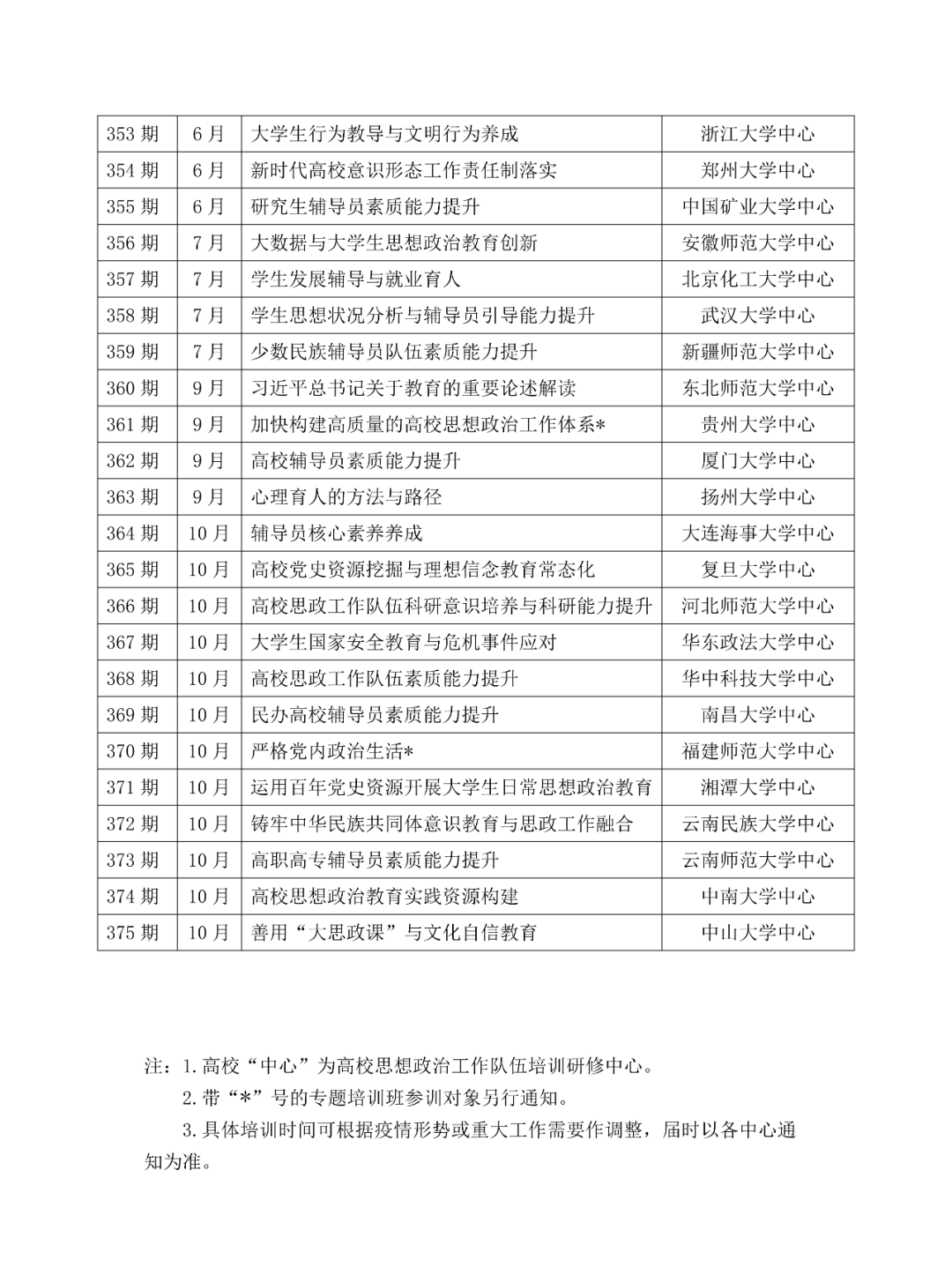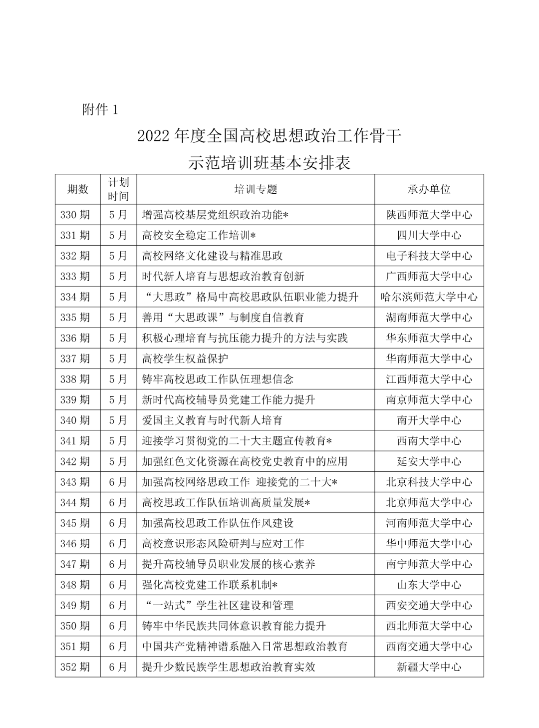 1.2022年度全国高校思政工作骨干示范培训班基本安排表