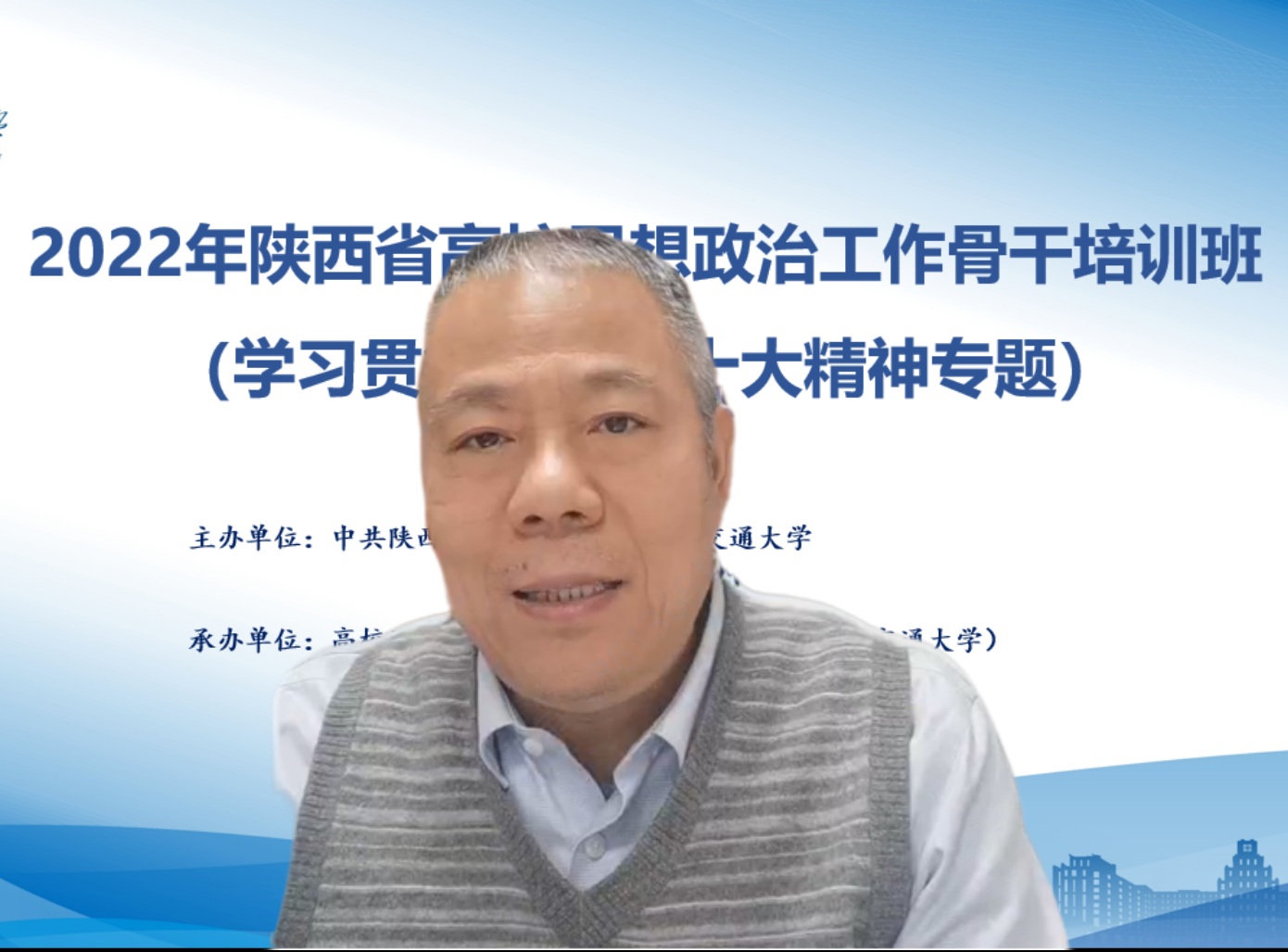 历来高度重视思想政治教育工作,培训研修中心作为教育部第一批40家国家高级思想政治队伍培训研究中心之一,自成立以来一直发挥着立足本校、带动全省、辐射全国的作用,承担了多期全国思政骨干示范培训班,并在陕西省委教育工委的指导下联系3年承办全省思政骨干培训班,积累了丰富的培训和教学经验,形成了具有交大特色的课程体系,为此次培训做了精心的准备。她希望参训学员能够珍惜此次来之不易的学习机会,围绕党的二十大精神融入高校思想政治工作展开深入的研讨,进行思想的碰撞,交流经验,积极探索。