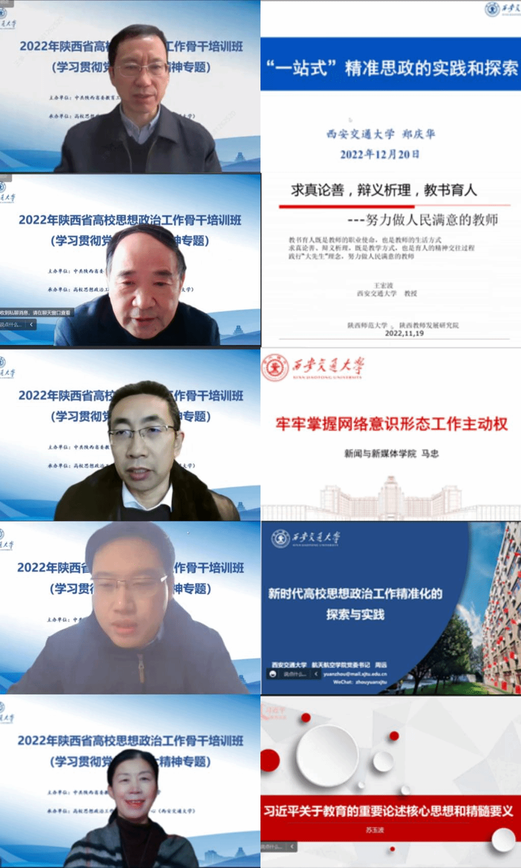 党委书记苏玉波教授分别作“‘一站式’精准思政的实践和探索”“求真论善、辩义析理、教书育人——努力做人民满意的教师”“牢牢掌握网络意识形态工作主动权”“新时代高校思想政治工作精准化的探索与实践”“习近平关于教育重要论述的理论体系与核心要义”等5场专题报告。
