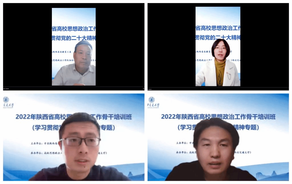 培训期间,学员老师们围绕培训主题就学习心得和工作感悟进行了分享、交流和研讨。西安思源学院学工部部长胡贵生指出,新时代高校思想政治工作需要不断创新工作方式,努力提升针对性和时效性,在一点一滴中满足学生成长发展的需求和期待,在一言一行中影响学生的思想观念、价值取向、精神风貌;西安工程大学党委宣传部副部长付博娜表示,要主动当好党的二十大精神的学习者、传播者、践行者,做精做强融合传媒,推进各项宣传工作深入人心,贴近人心,走进人心,促进师生在共同的理想信念、价值理念、道德观念上更加团结一致;西安培华学院党委教师工作部副部长田沛指出,广大思政课教师要深刻认识新时代的历史成就,找准认清党的二十大理论创新点,深刻领会马克思主义中国化时代化,努力做到把大道理讲实,小道理讲准,老道理讲清,把深奥的理论讲的有血有肉、入脑入心;西安医学院黑料网