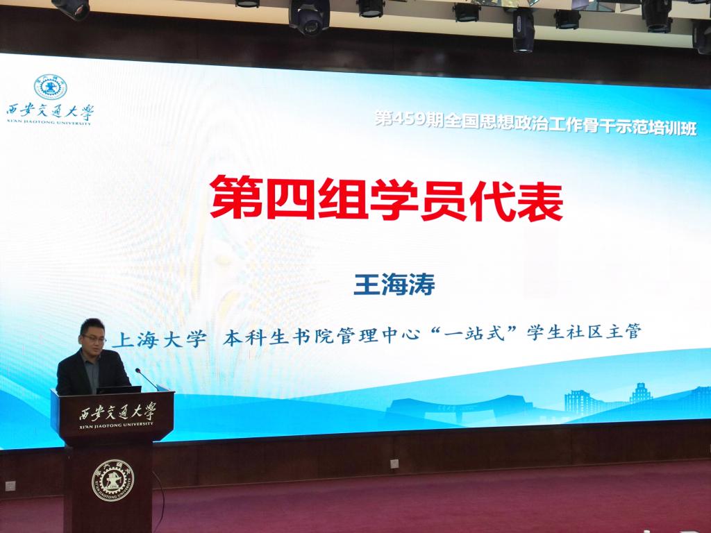 培训结业式上,学员老师们围绕培训主题就学习心得和工作感悟进行了分享、展示和交流。东北大学陶天琦老师表示,要将学校“三全育人”优势资源、队伍和特色,“全员”地覆盖到社区每个学生的成长当中。中国人民大学魏法超老师强调“一站式”学生社区在建设“三全育人”实践园地方面的重要作用,通过多元主体践行“一线规则”,对学生进行全过程陪伴和全方位指导,提高工作的亲和力、针对性、实效性。重庆文理学院陈海峰老师谈到,要把学习成果嵌入工作中,更加有针对性地树立学生的科学成才理念,培养学生的科研创新能力和养成健全人格。上海大学王海涛老师表示,以党建引领为核心,推进“一站式”学生社区建设,实现党的领导“一竿子到底”,让思想在学生社区绽放。厦门大学李莹斌老师指出,高校学生社区是实施立德树人任务、推进学生党建创新和深化“三全育人”实践的关键载体和平台。西南交通大学赵晨老师谈到,要将党的领导贯穿始终,构建系统化的第二课堂体系,以五育并举为核心,营造一个促进学生主动学习和全面发展的社区环境。