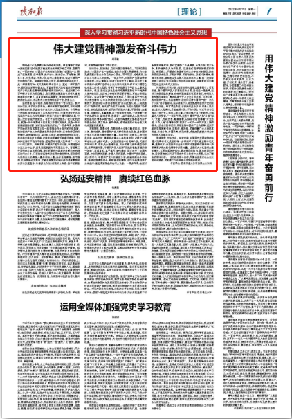 艰难困苦,玉汝于成。回首来路,中国共产党团结带领中国人民取得伟大成就的每一步都离不开伟大建党精神的支撑;展望前方,全面建设社会主义现代化国家新征程的每一步都需要从伟大建党精神中汲取力量。让我们大力弘扬伟大建党精神,以更加坚定的信仰、更加强烈的担当、更加积极的行动,紧密团结在以习近平同志为核心的党中央周围,以永不懈怠的精神状态、一往无前的奋斗姿态,向着全面建设社会主义现代化国家、实现第二个百年奋斗目标阔步前进。