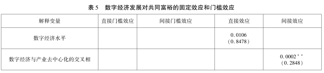 (一)数字经济影响共同富裕的直接效应