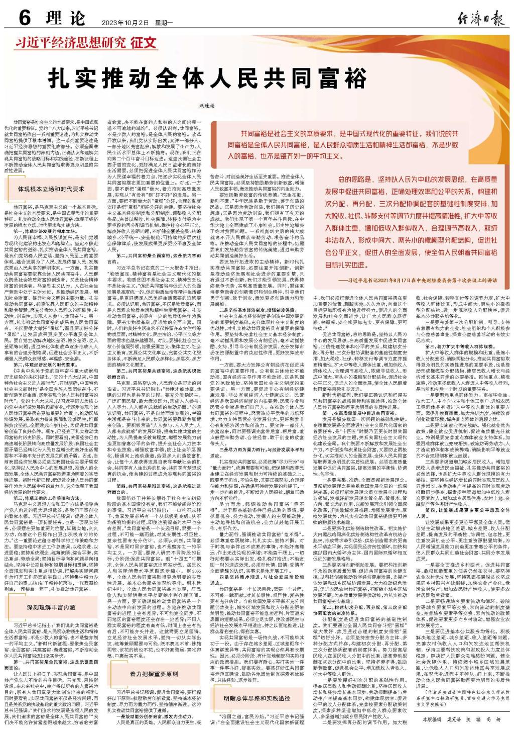 共同富裕,是马克思主义的一个基本目标,是社会主义的本质要求,是中国式现代化的重要特征。扎实推动全体人民共同富裕,体现了经济发展的根本立场、时代要求和实践方法。